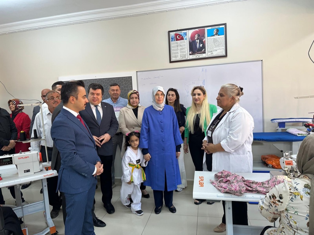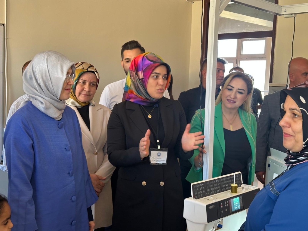 Ziyaret kapsamında, Gaziantep Valiliği koordinesinde Nurdağı Halk Eğitimi Merkezi Müdürlüğü tarafından yürütülen “İpekyolu Nurdağı Dikiş Nakış Atölyeleri Geçim Kaynağı Tesisi Projesi” çerçevesinde açılan dikiş ve nakış atölyeleri gezildi.