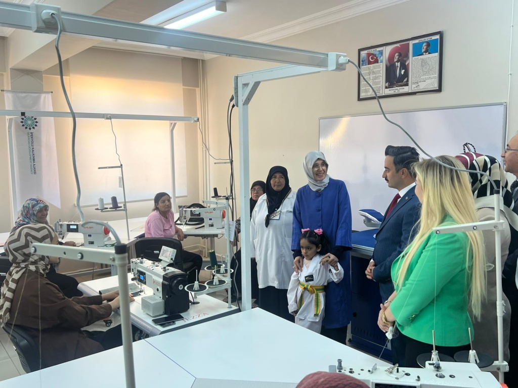 Gerçekleştirilen ziyaret, kursiyerlerimizin motivasyonunu artırmanın yanı sıra, kadın istihdamı ve mesleki eğitimin önemine de dikkat çekti. Heyet, Halk Eğitimi Merkezi bünyesinde yürütülen faaliyetler hakkında Kurum Müdürümüz Mehmet KURT’tan bilgi alarak yapılan çalışmalar üzerine değerlendirmelerde bulundu.